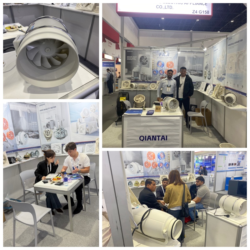世界貿易の中心地であるドバイで開催されたこの展示会には、幅広い業界の専門家、販売代理店、潜在的なパートナーが集まりました。 Shengzhou Qiantai のブースは、高効率排気ファン、換気ファン、軸流ファン、産業用ファン、およびそれらをサポートするモーターなど、同社の中核製品ラインを展示する中心的な役割を果たしました。現場での展示とデモンストレーションは、中国品質認証センターの認証を取得したこれらの製品の堅牢な性能と多彩な用途を強調しました。